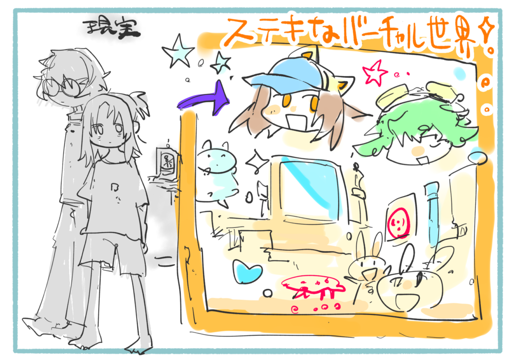 まちゅむら祭が実際にバーチャル空間で遊びに行けたらどんな感じかなと空想して描いた世界です。
