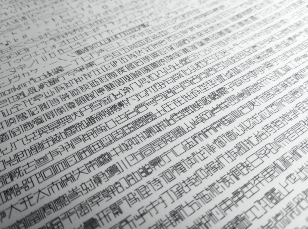 狭隘角は篆書にフィーチャーし、 完全に曲線を廃した近未来的なフォントです。