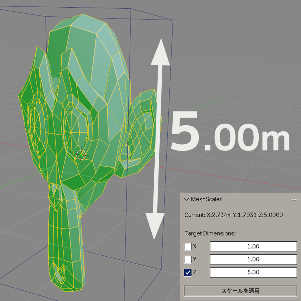 編集モードにおいて、任意のサイズに選択メッシュを拡縮できます。