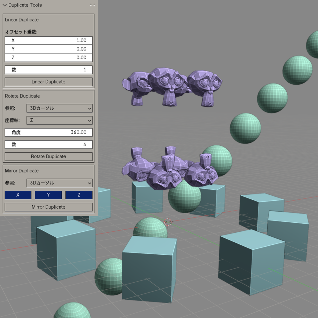 編集モードにおいて、モディファイアを利用しないメッシュの直線配列 円配列 ミラー配列を簡単に適用できます。