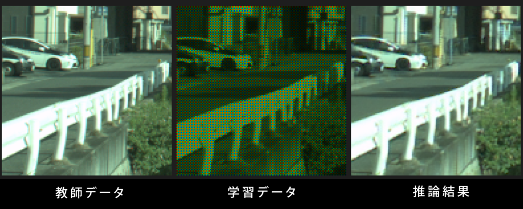 補足 : 一般的なベイヤーイメージセンサは1ピクセルあたりRGBどれかの色しか取得できない。これを画像処理によって補完し、1ピクセルあたりにRGBすべてのデータの入った画像を作成する行為をデモザイクと呼ぶ。
