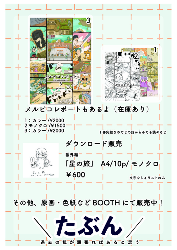 その他「メルピコレポート」と番外編もあるよ!気が向いたら色紙とか原画を販売します。