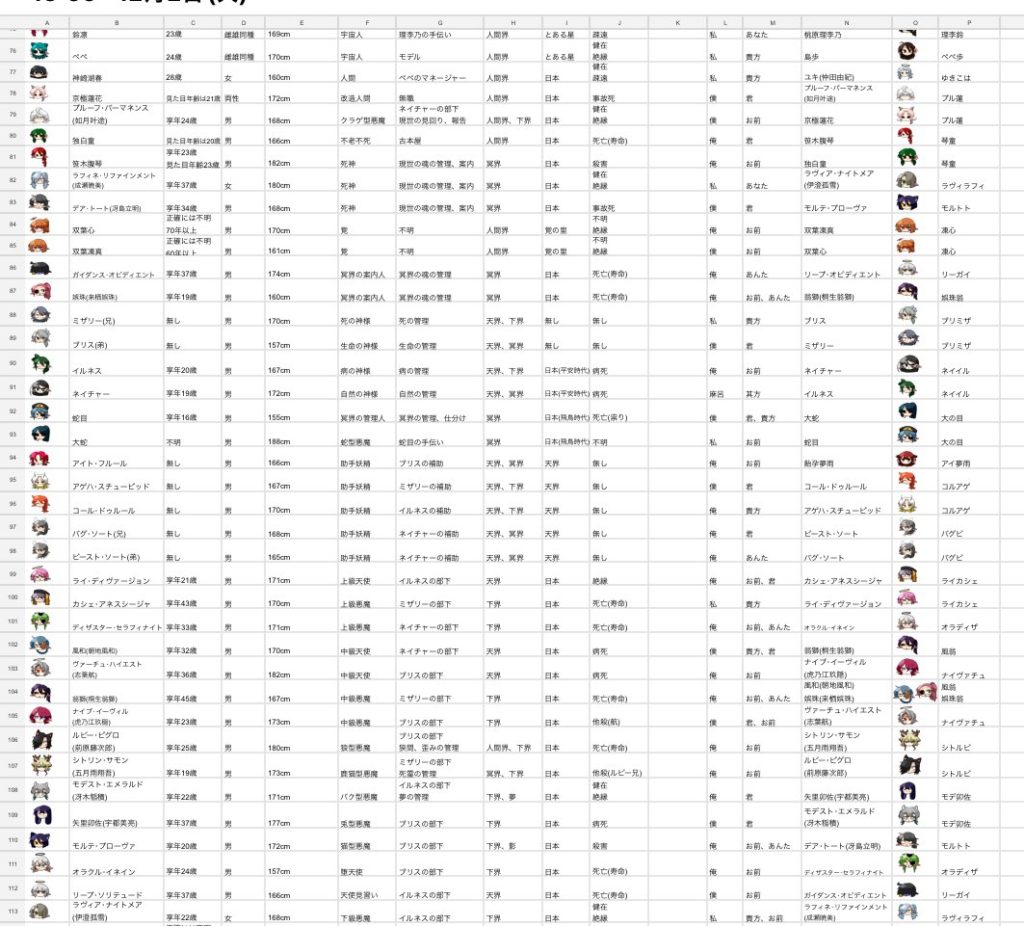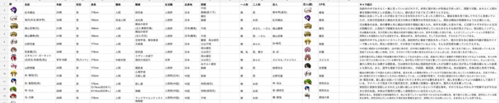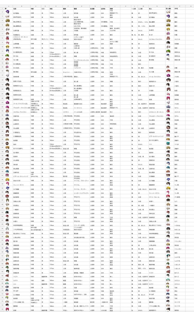 あとあれからキャラが増えました。現在は115名くらいです。