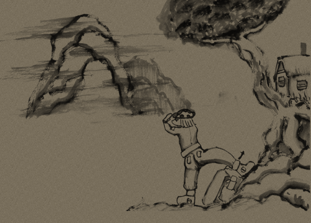 あ、そうだ 制作中の水墨ギャグ漫画も載せておくね